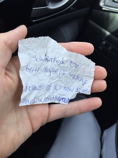 «Ήθελα να αυτοκτονήσω σήμερα. Εξαιτίας σου δεν θα το κάνω. Σε ευχαριστώ υπέροχε άνθρωπε».