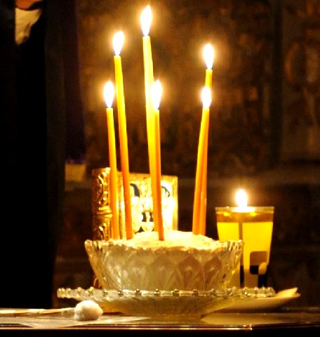 Σήμερα μέ τό ἀλεύρι αὐτό κατασκευάζουν πρόσφορο γιά τή θ. λειτουργία· ἔτσι εἶναι καλό νά ἐπακολουθεῖ καί τό μυστήριο τῆς θ. εὐχαριστίας. Τό ἀλεύρι δέν συμβολίζει κάτι ἰδιαίτερο· πρόκειται γιά ὑλικό, ἁπλό καί κατάλληλο γιά τή σταθεροποίηση τῶν ἑπτά κεριῶν.