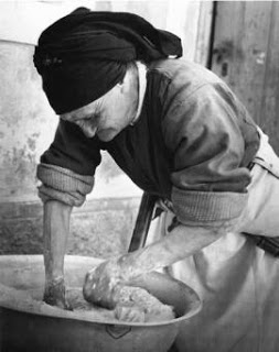 Μόλις ἔβλεπε ὅτι ἔγινε τὸ προζύμι, ἔπαιρνε τὴ σήτα τὴν πλυμένη, ποὺ τὴν εἶχε μέσα στὴ σακκούλα, γιὰ νὰ κοσκινίσει τὸ ἀλεύρι, λίγο ἀλεύρι· δὲν ἔφκιανε τὶς λειτουργιὲς ὅπως τὶς κάνουν τώρα, ἀλλὰ τόσο μικρές.