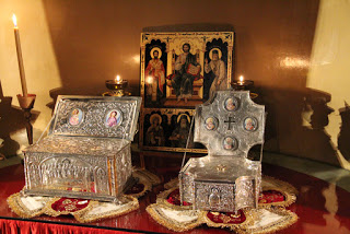 Ὁ ἴδιος ὁ Θεός λοιπόν τιμᾶ τά λείψανα τῶν ἁγίων ἀνθρώπων καί τά ἐμποτίζει μέ τήν ἄκτιστη θεία Του χάρη. Γι’ αὐτό καί ἡ Ὀρθόδοξη Ἐκκλησία ἀποδίδει τιμή σ’ αὐτά καί τά θέτει κάτω ἀπό τό ἱερό θυσιαστήριο (Ἑβρ. ιγ’ 10), μιμούμενη στό θέμα αὐτό τό οὐράνιο, τό ἀχειροποίητο θυσιαστήριο (Ἀποκ. στ’ 9), γιατί τά δικά μας θυσιαστήρια, εἶναι «ἀντίτυπα τῶν ἀληθινῶν», δηλαδή ἐκείνου τοῦ οὐράνιου θυσιαστηρίου (Ἑβρ. θ’ 24).