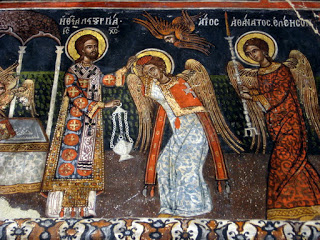 Ἀλήθεια, πόσες φορές Ἄγγελοι καί Ἀρχάγγελοι δέν θυμιάζουν τούς Ναούς καί τούς πιστούς στή διάρκεια τῆς Θείας Λατρείας; Καί, διόλου ἀπίθανον, ὄχι μόνο Ἄγγελοι ἀλλα καί Διάκονοι καί Ἅγιοι τῆς Θριαμβεύουσας Ἐκκλησίας!