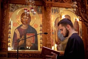 Που θα δοξασει τον Θεό με αγγελική αρμονία χωρίς θεατρικές κινήσεις παρά μόνο με σύνεση προσοχή και ευλάβεια..