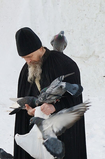Τον χειμώνα, όταν το χιόνι είχε καλύψει τα πάντα, έβγαινε από το ερημιτικό κελί του, έριχνε κανναβούρι πάνω του -στο κεφάλι του, στους ώμους του, στα γένια του, στα χέρια του- και φώναζε: