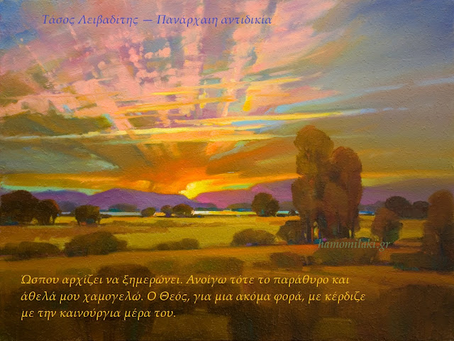 Ανοίγω τότε το παράθυρο και άθελά μου χαμογελώ. Ο Θεός, για μια ακόμα φορά, με κέρδιζε με την καινούργια μέρα του.