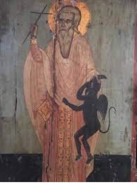 Όταν η γρια – Πανούκλα έφτασε στο έμπα του χωριού , εκεί ακριβώς που είναι σήμερα η Εκκλησία της Α. Τριάδας , φάνηκε από πάνω από το δρόμο , από την κορφή του λόφου που βρίσκεται ως και σήμερα το παλιό εκκλησάκι του Αϊ – Γιώργη , να ροβολάει στον κατήφορο ένας ασπρομάλλης γέροντας , με γένια μακριά , που έλαμπε το πρόσωπό του σαν το φεγγάρι.