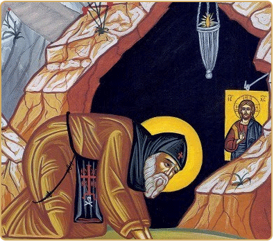 Ο Θεός προστάζει να σταθής σ’ ένα τόπο για τρία χρόνια στραμμένος προς ανατολάς και να φωνάζης νύχτα-μέρα επί τρία έτη εκατό φορές: Ο Θεός, ελέησόν με, το βδέλυγμα της ερημώσεως, άλλες τόσες φορές: Ο Θεός, ελέησόν με, την εσκοτισμένην απάτην κι άλλες τόσες Ο Θεός, ελέησόν με, το αρχαίον κακόν, και όταν τα κάνης αυτά, θα σε συναριθμήση με τους αγγέλους του.