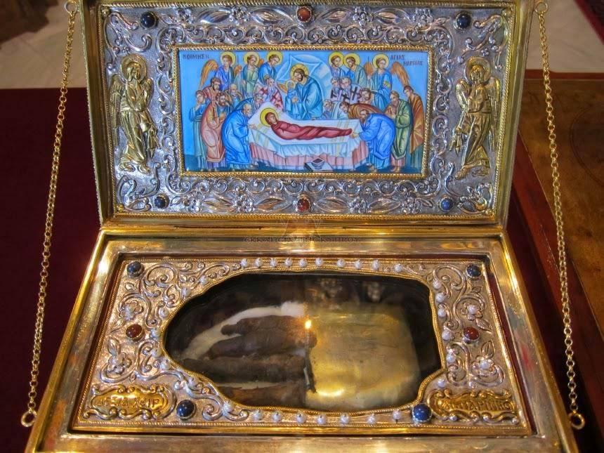 -Ευχαρίστως παιδιά μου, ελατέ στο εκκλησάκι. Κράτα αγόρι μου το χέρι του Αγίου καί γονάτισε.