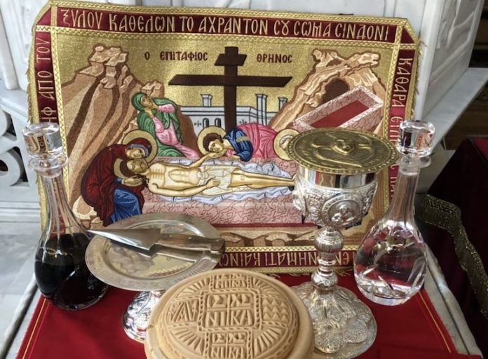 Έτσι στην πρόθεση κατά την ώρα της προσκομιδής γίνεται η ανάμνηση της Γεννήσεως και της Σταυρώσεως του Χριστού.