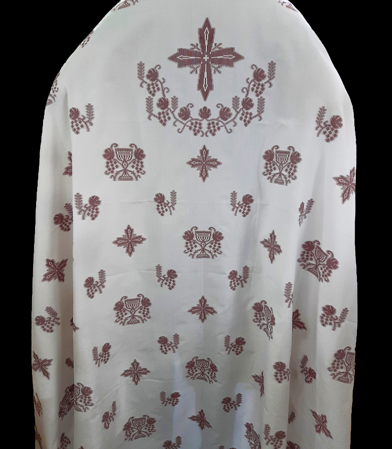 Συμβολίζει τη χαρά του Αγίου Πνεύματος που πήραν οι Απόστολοι, τον άρραφο χιτώνα που έντυσαν τον Χριστό, τη δικαιοσύνη και την ανιδιοτέλεια των λειτουργών.