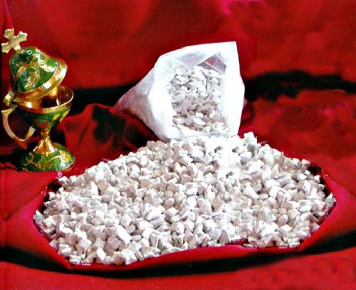 Το χωνάκι ήταν γεμάτο με μικρούς κόκκους όπως του λιβανιού ή της χιώτικης μαστίχας.