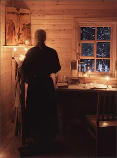 Καί την προσευχή του ναού τελειώνουν στο κελλί τους. Ή βρώση καί ή πόση του σώματος και του αίματος του Κυρίου πού μετέλαβαν στη Θεία Λειτουργία, συνεχίζεται στο άγιο θυσιαστήριο των καρδιών τους με την προσευχή…