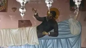 Κάθε χρόνο του αγίου Νικολάου πήγαιναν εκεί, λειτουργούσαν και έκαναν αρτοκλασία. Ο Γέροντας ζήτησε να βαφτίσει το πρώτο από τ’ αδέλφια μου. Στην αρχή ο παππούς έφερε τις αντιρρήσεις του και δεν τον άφησε να βαφτίσει κανένα από τ’ αγόρια.