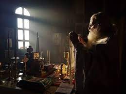 Ἡ πράξη παραπέμπει περισσότερο στὸ ἀρχαῖον ἔθος νὰ πίπτει στὸ κεφάλι τοῦ ἱερέως τὸ καταπέτασμα τὴν ὥρα τῆς ἀνάγνωσης τῆς πρώτης ἀπὸ τὶς τρεῖς τότε εὐχὲς τῶν πιστῶν Τὰ ἰσχύοντα σήμερα στὴν ἀρχιερατικὴ Λειτουργία, ὅσον ἀφορᾶ τὸ θέμα αὐτό, τὸ νὰ σείεται δηλαδὴ ὁ ἀέρας ὑπὲρ τῆς κεφαλῆς τοῦ Ἀρχιερέως, κατὰ τοὺς Μελέτιο Συρίγο, Νεόφυτο Μεταξά, Θεόφιλο Καμπανίας καὶ Κωνσταντίνο (Καισάριο) Δαπόντε, συμβολίζει ὅτι συνθάπτεται αὐτὸς μὲ τὸ Χριστὸ γιὰ νὰ ἀναστηθεῖ μὲ Αὐτόν.