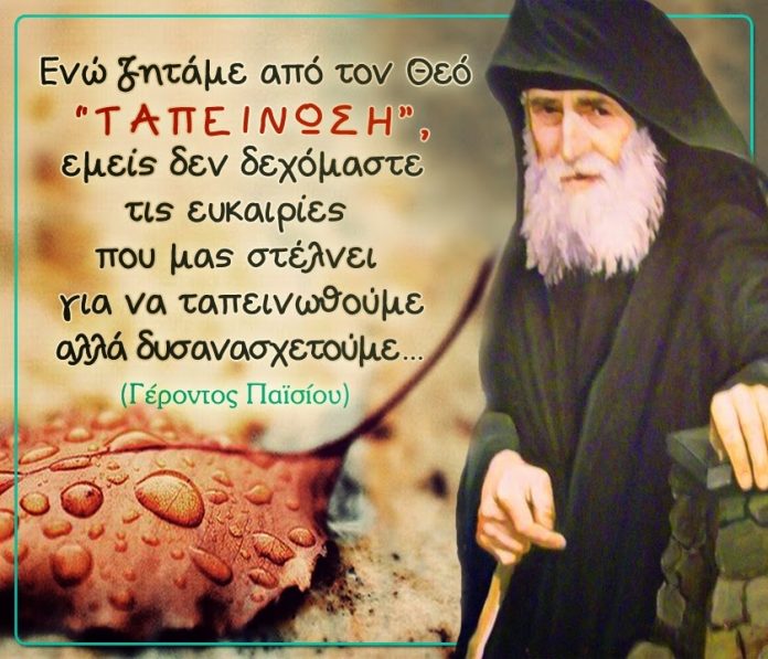 Στο βιβλίο «ο Ιεραπόστολος του Ζαΐρ» σελ. 26 διαβάζουμε τον θαυμαστό και διακριτικό τρόπο που χρησιμοποίησε ο Άγιος Παΐσιος, προκειμένου να διδάξει την ταπείνωση στον Ιεραπόστολο π. Κοσμά Γρηγοριάτη, όταν ακόμα ήταν λαϊκός.