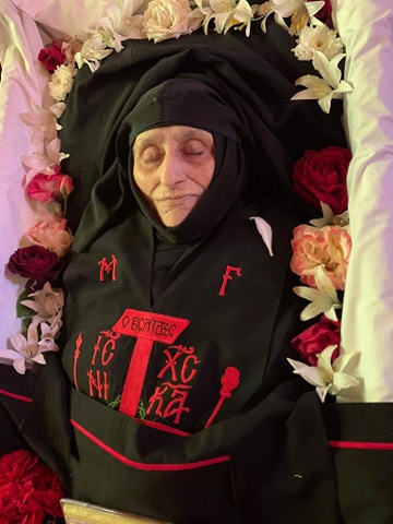 Η εξόδιος Ακολουθία της θα πραγματοποιηθεί από τον Σεβασμιότατο Μητροπολίτη Σισανίου και Σιατίστης κ.κ Αθανάσιο στην Ιερά Μονή Γεννέσιου της Θεοτόκου στο Δρυόβουνο της Κοζάνης, αύριο Τετάρτη 17 Ιουνίου στις 08.00 π.μ και θα ταφεί σε σημείο που ίδια υπέδειξε, στην Μονή.