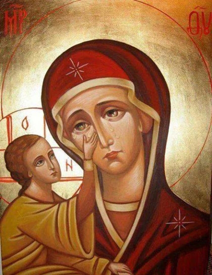 Η θρησκεία του Χριστού είναι πονεμένη θρησκεία, ο ίδιος ο Χριστός καρφώθηκε απάνω στο ξύλο: κ” η μητέρα του η Παναγία πέρασε κάθε λύπη σε τούτον τον κόσμο.