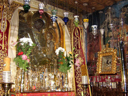 Το έτος 1646, που ήταν ένα έτος πολύ δύσκολο για την Ιερά Μονή, διότι δεν είχε τα απαραίτητα χρήματα για να πληρώσει τους καθορισμένους φόρους στους Τούρκους κατακτητές, ο τραπεζάριος του Μοναστηριού, περνούσε μπροστά από αυτήν την εικόνα συνεχώς, ακόμα και τη νύχτα βαστάζοντας στα χέρια του αναμμένα δαδιά.