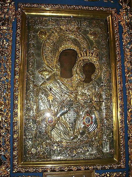 Ας ατενίζουμε ευλαβικά και εμείς την πανάχραντη μορφή της, για να διαπεράσουμε υπό τη μητρική της προστασία τον πολυκύμαντο Ιορδάνη της ζωής μας και να φτάσουμε όλοι ασφαλείς στην ακύμαντη γαλήνη της Βασιλείας του Θεού.