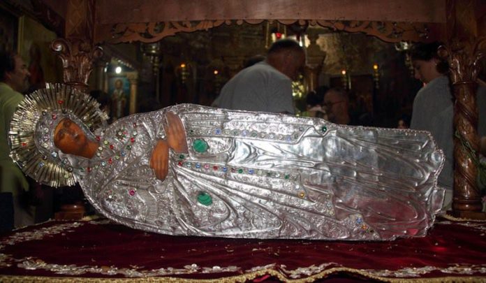 «Τιμιωτέρα των Χερουβείμ και ενδοξοτέραν ασυγκρίτως των Σεραφείμ» ονομάζουμε αδελφοί μου αγαπητοί την Υπεραγία Θεοτόκο, και αυτό γιατί ενώ ακόμη κι αυτές οι επουράνιες δυνάμεις κυκλώνουν το θρόνο του Θεού, Εκείνη, η Παναγία μας, κυοφόρησε μες την μήτρα Της τον Υιό και Λόγο του Θεού.