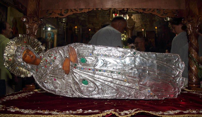 Ηξιώθη να χωρέσει στη γαστέρα της, Εκείνον που δεν χωρείται Στους Ουρανούς, να πλάσει στα σπλάχνα Της, Εκείνον που έπλασε τον ήλιο και τη σελήνη, να κρατήσει στην αγκαλιά Της, Εκείνον που κρατά και συντηρεί τα σύμπαντα, να θυλάσει και να θρέψει Εκείνον που τρέφει ολόκληρη την κτίση.