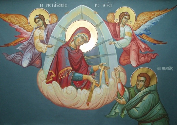 Μα σαν άνοιξαν τον τάφο τον βρήκαν άδειο. Έτσι ο Θωμάς αξιώθηκε να δει αυτή ακριβώς την ιερή στιγμή, την ανάληψη της αναστημένης Θεοτόκου και σαν απόδειξη αυτής έλαβε στα χέρια του την Τίμια Ζώνη της.