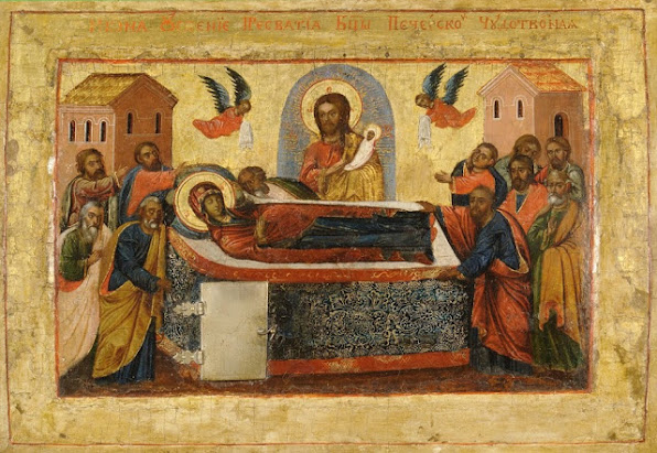 Αύριο 15 Αυγούστου είμαστε καλεσμένοι όλοι σε μια κηδεία. Η Παναγία μητέρα αφήνει το πνεύμα της στα χέρια του Υιού και Θεού της. Απόστολοι εκ περάτων, μαθητές, φίλοι και πιστοί έχουν μαζευτεί γύρω από το πανάχραντο σκήνωμα της.