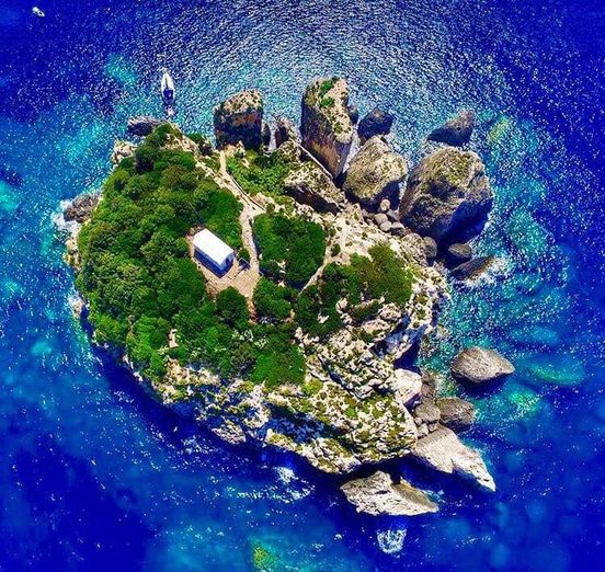 Το εκκλησάκι της Παναγίας της Διώτισσας στην κορυφή της απόκρημνης νησίδας Δίας, στις ακτές της Κεφαλονιάς.