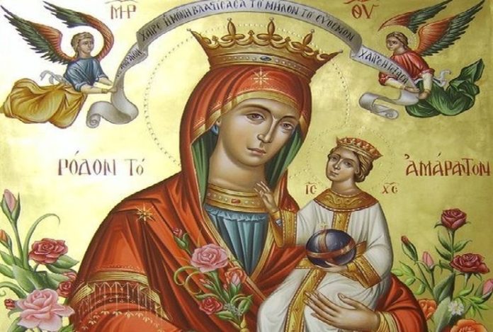 Είναι πάντοτε αγία και, μάλιστα, αγία από κάθε άποψη, γι’ αυτό και λέγεται Παναγία. Βρίσκεται παντού και σε κάθε εικόνα της. Η εικών της είναι αγιασμένη από την ίδια. Ατένιζε λοιπόν την εικόνα της με απλότητας καρδιάς, με πίστh φωτεινή και ορθόδοξο.