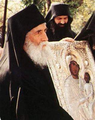 Σε κάποια στιγμή δίπλα μου ήταν ο γέροντας Παΐσιος και κρατούσε την εικόνα. Ήταν σε μια ανηφόρα που βγαίναμε μέσα στο δάσος εκεί στο βουνό και ο γέροντας επειδή είχε αφαιρέσει τους πνεύμονές του -είχε μόνο μισό πνεύμονα- πάντοτε όταν περπατούσε ή όταν ανέβαινε κάπου δυσκολευόταν κι ήταν και αδύνατος σωματικά, δεν είχε δυνάμεις.