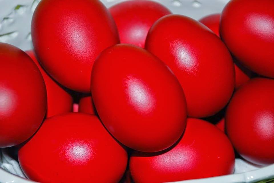 Από εδώ έχουμε τό έθιμο τού κόκκινου αυγού! Διότι «Αληθώς Ανέστη ο Κύριος»! Καί τά αυγά πρέπει νά βάφονται κόκκινα καί μόνον.