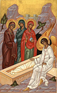 Νωρὶς τὸ πρωὶ τῆς Κυριακῆς, πρὶν ἀκόμη ξημερώσει, οἱ Μυροφόρες ξεκίνησαν γιὰ τὸν Τάφο. Μόνες τους, ἀδύναμες γυναῖκες αὐτές, ἔτρεχαν μέσα στὸ σκοτάδι τῆς νύχτας σὲ μιὰ πόλη, ὅπου ἀκόμη ἀντηχοῦσαν οἱ κραυγὲς τοῦ ὄχλου, ποὺ μὲ μίσος ἐπικροτοῦσε τὴ Σταύρωση τοῦ Χριστοῦ.