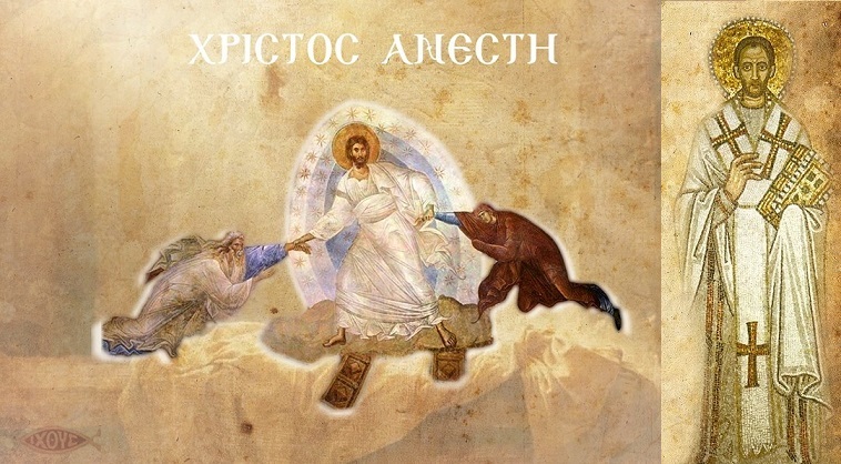 Κανένας πιά νά μή θρηνεῖ τή φτώχεια του, γιατί τώρα ἔγινε φανερή ἡ Βασιλεία τοῦ Θεοῦ, ἐκείνη πού προσφέρεται σ’ ὅλους ἐξίσου. Κανένας νά μήν κλαίει πιά τά πταίσματά του, γιατί συγχώρεσή μας εἶναι ὁ Ἀναστημένος.
