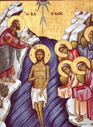 «Σήμερον τῶν ὑδάτων ἁγιάζεται ἡ φύσις καὶ ρήγνυται ὁ Ἰορδάνης, καὶ τῶν ἰδίων ναμάτων, ἐπέχει τὸ ρεῦμα, Δεσπότην ὁρῶν ρυπτόμενον».