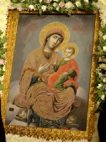 Η περίπυστος εικόνα της Παναγίας μεταφέρθηκε από τη Μικρά Ασία το 1922 μ.Χ., κατά την περίοδο της Εθνικής μας τραγωδίας και φυλασσόταν στο υπόγειο παρεκκλήσιο του Αγίου Δημητρίου, καθώς ήταν κατεστραμμένη από τη φωτιά και την φθορά του χρόνου.