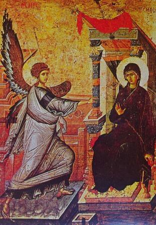Τον καιρό που ο εμπνευσμένος υμνογράφος της Εκκλησίας, με τη γλώσσα του, που έμοιαζε με κάλαμο οξυγράφο, γεμάτος δέος και κατάπληξη μπροστά στο θαύμα του Ευαγγελισμού και το μυστήριο της σωτηρίας μας, αδυνατούσε να βρει λέξεις να ονομάσει την Παναγία Παρθένο, ο ταπεινός αγιογράφος, κρατώντας της τέχνης του τα πινέλα, βρισκόταν σε μεγάλη απορία.