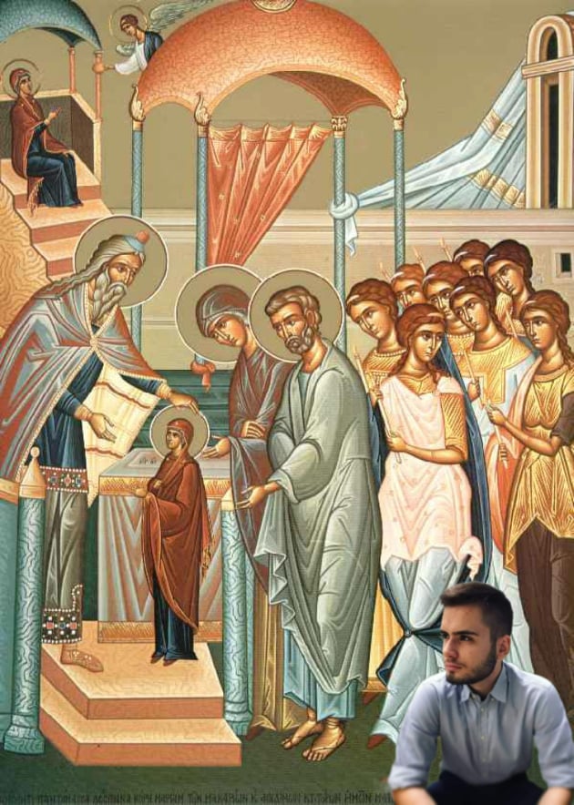 Αύριο με μεγάλη χαρμονή η εκκλησία μας εορτάζει τα είσοδια της υπεραγιας Θεοτόκου την αφιέρωση της παναγιας σε ηλικία τριών ετών από τους γονείς της στον ναό.