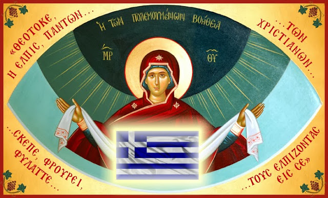 Τῆς Σκέπης σου Παρθένε ἀνυμνοῦμεν τὰς χάριτας, ἣν ὡς φωτοφόρον νεφέλην ἐφαπλοῖς ὑπὲρ ἔννοιαν, καὶ σκέπεις τὸν λαόν σου νοερῶς, ἐκ πάσης τῶν ἐχθρῶν ἐπιβουλῆς· σὲ γὰρ σκέπην καὶ προστάτιν καὶ βοηθόν, κεκτήμεθα βοῶντές σοι· δόξα τοῖς μεγαλείοις σου Ἁγνή, δόξα τῇ θείᾳ σκέπῃ σου, δόξα τῇ πρὸς ἡμᾶς σου προμηθείᾳ Ἄχραντε.