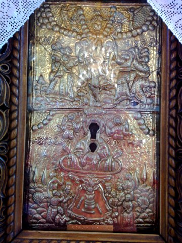 Στο εσωτερικό της Μονής φυλάσσεται η θαυματουργή εικόνα της Παναγίας Χρυσοπηγής.