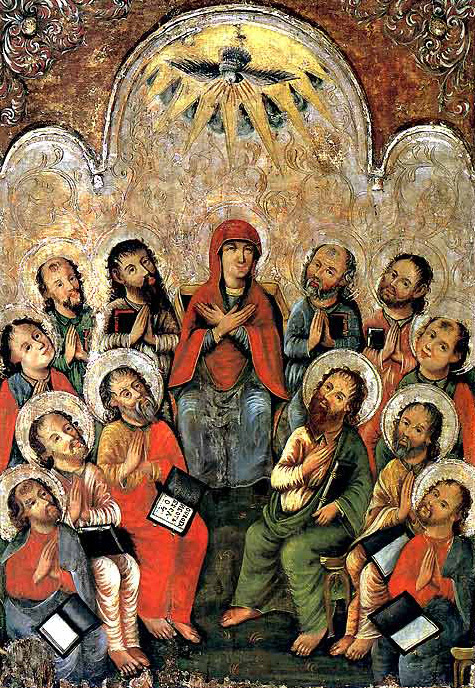 On the tenth day after the Ascension of Jesus Christ during the Jewish feast of Pentecost, at the third hour, but according to our reckoning at nine o’clock in the morning, when people usually go to the temple both for offering up a sacrifice and prayer [1] all the disciples were assembled in Jerusalem, in the upper room (Acts 1:13), which was “on Mount Zion”, “and suddenly there came a sound from heaven, as of a rushing mighty wind,” (as though from an unusually strong wind).”