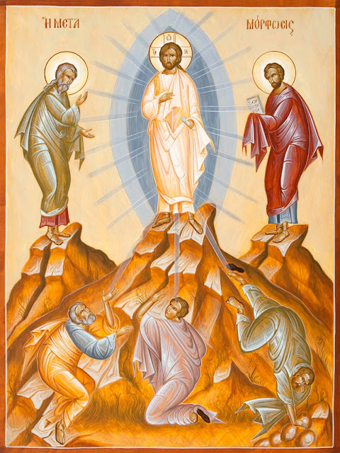 «Καὶ ἔλαμψε τὸ πρόσωπό Του σὰν τὸν ἥλιο καὶ τὰ ροῦχα Του ἔγιναν λευκὰ σὰν τὸ χιόνι».