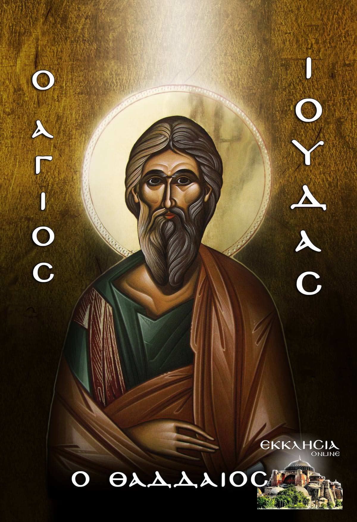 Αγιώτατε Απόστολε, Άγιε Ιούδα Θαδδαίε, πιστέ υπηρέτη και φίλε του Ιησού, η Ορθοδοξία, σ’ όλον τον κόσμο σε τιμά και σε επικαλείτε ως Προστάτη των απελπισμένων υποθέσεων, αυτών για τις οποίες έχει χαθεί κάθε ελπίδα.