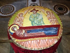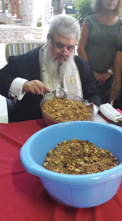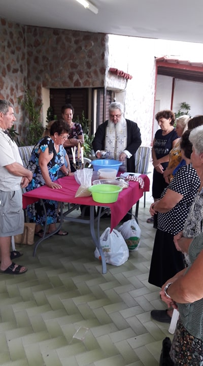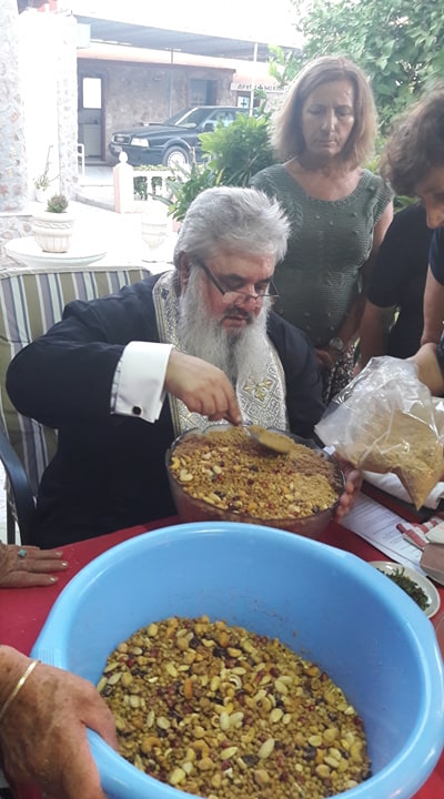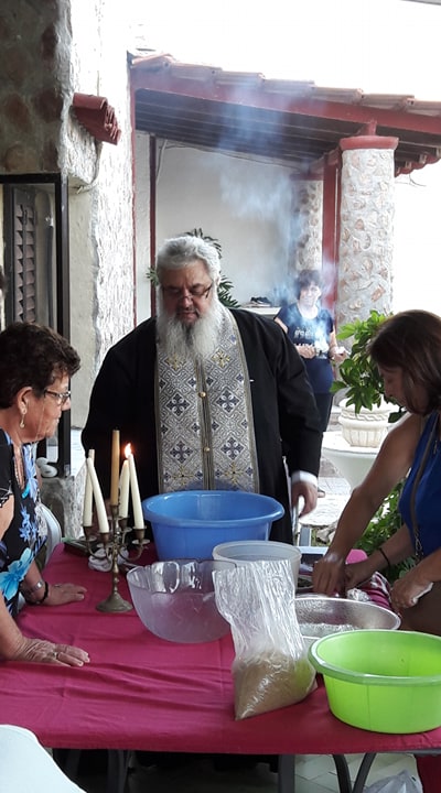 Ο Θεός ο Παντοκράτωρ, ο ποιήσας τον ουρανόν και την γην, την θάλασσα και πάντα τα εν αυτοίς, ο ευλογήσας τους πέντε άρτους εν τη ερήμω και εξ αυτών πεντακισχιλίους άνδρας χορτάσας, αυτός ευλόγησον και τους καρπούς τούτους και τους μεταλαμβάνοντας εξ αυτών επί υγεία και σωτηρία των ψυχών και των σωμάτων αυτών και τοις προσενέγκασι μισθόν ουράνιον παράσχου, πρεσβείες της Αχράντου Δεσποίνης ημών Θεοτόκου και Αειπαρθένου Μαρίας είς την Κοίμησην και την Ιεράν Μετάστασην Αυτής εις τους ουρανούς εορτάζομεν !