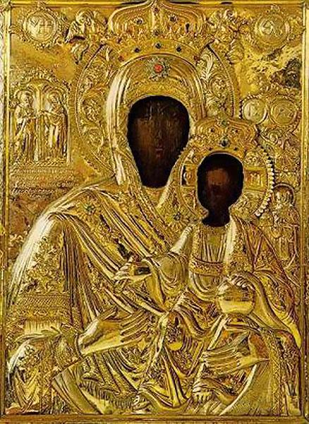 Τι ανταποδώσωμεν οι πιστοί δούλοι Σόυ Παρθένε αντί της χάριτος Σου πολλής ήνπερ έδωσας μας χαρισαμένη Μήτερ Εικόνα Σου Αγίαν ως πλούτον άφθορον.