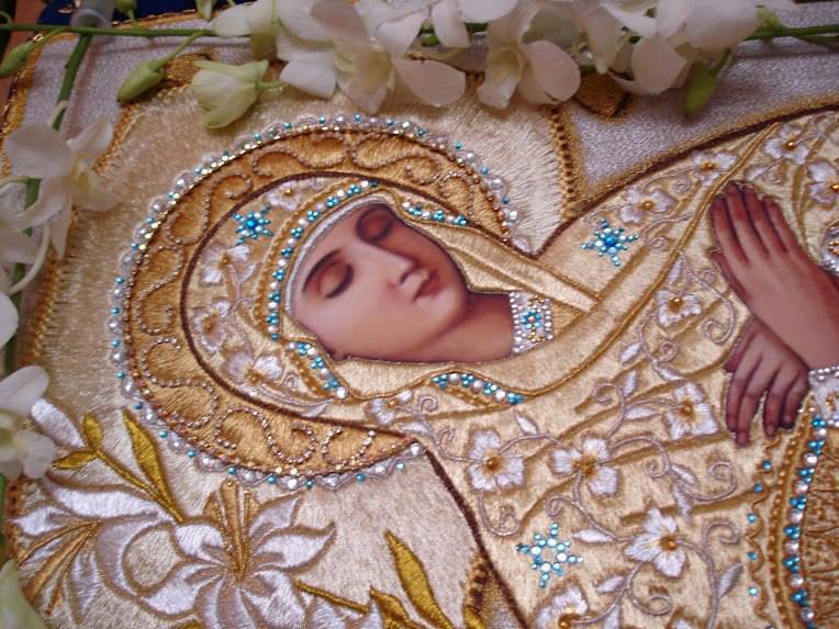 Βασιλὶς καὶ πόλου, καὶ τῆς γῆς ἀληθῶς, εἰ καὶ τάφῳ σμικροτάτω συγκέκλεισαι, ἐγνωρίσθης πάσῃ κτίσει Μαριάμ.