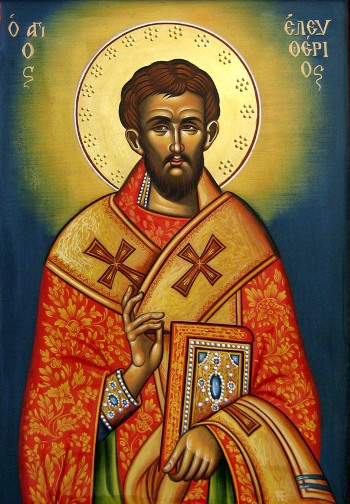 Πρεσβεύειν ἀεί, Χριστῷ τῷ Πανοικτίρμονι, ὡς Μάρτυς αὐτοῦ, καί λειτουργός εὐπρόσδεκτος, μή παύση Ἐλευθέριε, ἴνα πάσης ρυσθείημεν θλίψεως, καί εἰρηναίαν ἀνύωμεν ζωήν, οἱ μέγαν προστάτην σέ πλουτήσαντες.