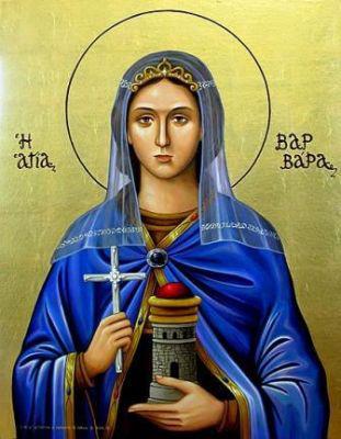 Βαρβάραν τήν ἁγίαν τιμήσωμεν, ἐχθροῦ γάρ τάς παγίδας συνέτριψε, καί ὡς στρουθίον ἐρρύσθη ἐξ αὐτῶν, βοηθεία καί ὄπλω τοῦ Σταυροῦ ἡ πανσεμνός.