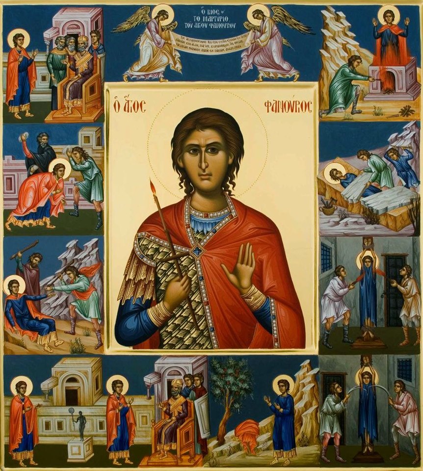 Ἀθλητά πανάριστέ του Χριστοῦ, σύ τάς τῶν τυράννων κατεφρόνησας ἀπειλᾶς• ὅθεν καί μυρίας ὑπέμεινας βασάνους, ἐν μέσω τοῦ σταδίου, μάρτυς Φανούριε.