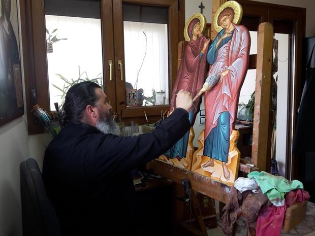 Κύριε Ἰησοῦ Χριστὲ ὁ Θεὸς ἡμῶν, ὁ ἀπερίγραπτος ὑπάρχων τῇ φύσει τῆς Θεότητος καὶ διὰ τὴν σωτηρίαν τοῦ ἀνθρώπου ἐπ ἐσχάτων ἐκ τῆς Παρθένου καὶ Θεοτόκου Μαρίας ἀφράστως σαρκωθεὶς καὶ ἀξιώσας περιγράφεσθαι · ὁ τὸν ἅγιον χαρακτῆρα τῆς ἀχράντου ὄψεως ἐν τῷ ἁγίῳ μανδηλίῳ τυπώσας καὶ δι αὐτοῦ τὴν νόσον τοῦ τοπάρχου Αὐγάρου ἰασάμενος καὶ τὴν ψυχὴν αὐτοῦ φωτίσας εἰς τὴν ἐπίγνωσιν σου τοῦ ἀληθινοῦ Θεοῦ ἡμῶν · ὁ διὰ τοῦ Ἁγίου σου Πνεύματος συνετίσας τὸν θεῖον Ἀπόστολόν σου καὶ Εὐαγγελιστὴν Λουκᾶν τὴν μορφὴν τῆς παναμώμου σου Μητρὸς διαγράψαι, φερούσης σε ὡς βρέφος ἐν ταῖς ἀγκάλαις αὐτῆς, καὶ τὸ «Ἡ χάρις τοῦ ἐξ ἐμοῦ τεχθέντος δι ἐμοῦ μετ αὐτῶν» εἰπούσης, αὐτὸς Δέσποτα Θεὲ τῶν ὅλων, φώτισον, συνέτισον τὴν ψυχὴν τὴν καρδίαν καὶ τὴν διάνοιαν τοῦ δούλου σου (Δεῖνος) καὶ τὰς χεῖρας αὐτοῦ εὔθυνον πρὸς τὸ ἀμέμπτως καὶ ἀρίστως διαγράφειν τὸ εἶδος τῆς ἐμφερείας σου καὶ τῆς παναχράντου σου Μητρὸς καὶ πάντων σου τῶν ἁγίων, εἰς δόξαν σὴν καὶ εἰς φαιδρότητα καὶ ὠραϊσμὸν τῆς ἁγίας σου Ἐκκλησίας καὶ εἰς ἄφεσιν ἁμαρτιῶν τῶν σχετικῶς αὐτὰς προσκυνούντων καὶ μετ εὐλαβείας ἀσπαζομένων καὶ τὴν τιμὴν ἐπὶ τὸ πρωτότυπον ἀναφερόντων. Λύτρωσαι δὲ αὐτὸν ἐκ πάσης διαβολικὴς ἐπηρείας προκόπτοντα ἐν πάσαις ταῖς ἐντολαῖς σου πρεσβείαις τῆς παναχράντου Μητρός σου, τοῦ ἁγίου ἐνδόξου καὶ Εὐαγγελιστοῦ Λουκᾶ καὶ πάντων τῶν ἁγίων. Ἀμήν.