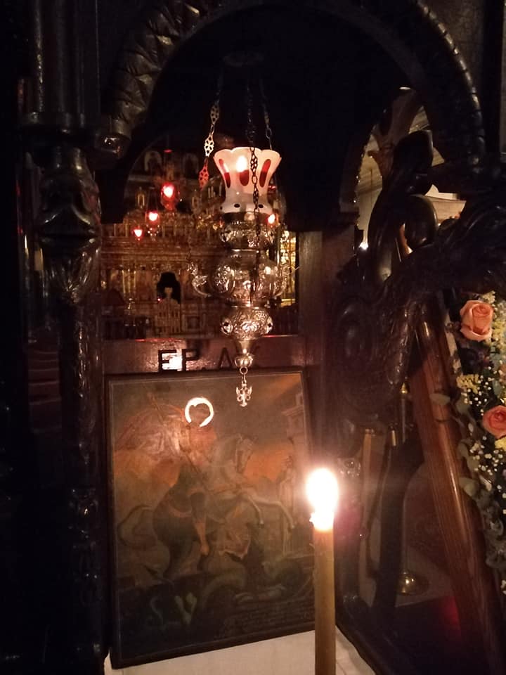 Στο τέλος της θείας Λειτουργίας (στο “είη το όνομα Κυρίου ευλογημένον”) η καντήλα από το μεσαίο προσκυνητάρι (του Αγίου Γεωργίου) άρχισε να κινείται από μόνη της κυκλικά για αρκετή ώρα, χωρίς την ύπαρξη ρεύματος αέρα, χωρίς να υπάρξει επαφή ανθρώπου με το προσκυνητάρι και χωρίς να υπάρχει εν γένει κίνηση μπροστά ή πίσω από αυτό. Ταυτόχρονα απλώθηκε μια ευωδία γύρω από το προσκυνητάρι.