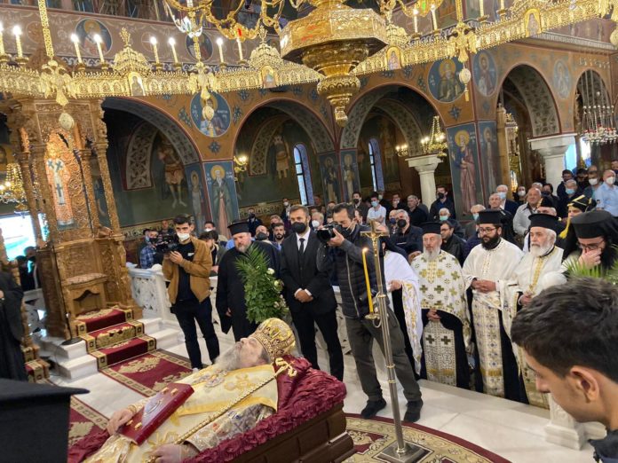 Αρχικά τον μετέφεραν στο Επισκοπείο της Μητροπόλεως και έπειτα με πομπή στον Ναο Εισοδίων της Θεοτόκου σύμφωνα με το ΕΚΚΛΗΣΙΑ ONLINE.